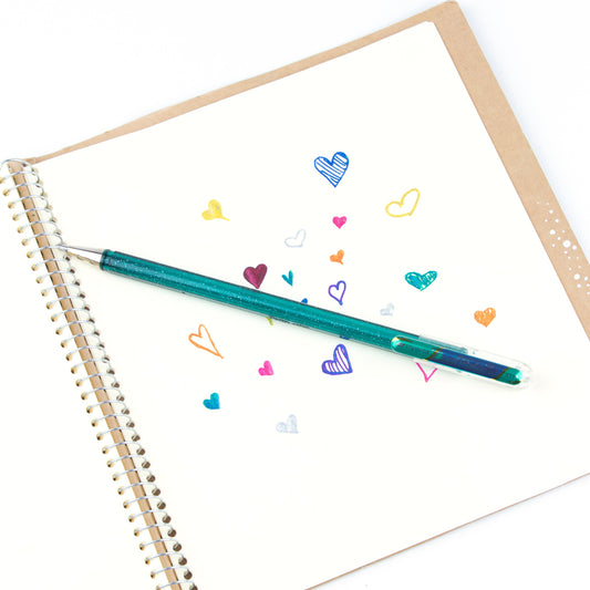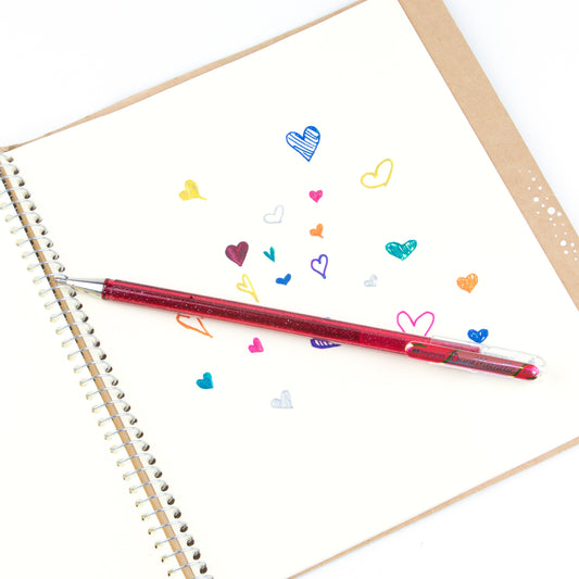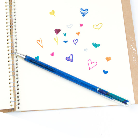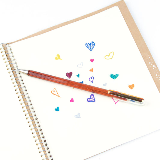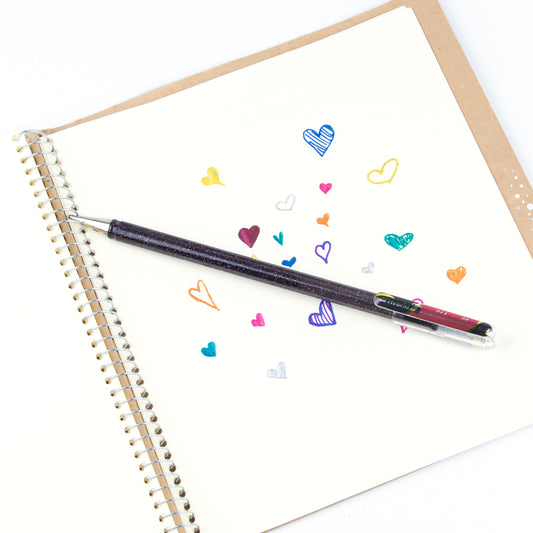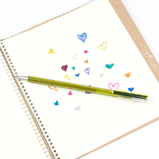 Metallic gel roller with pigment ink that shifts color by angle and paper tone—one shade on light coloured paper, another on dark. Great for journaling, putting special touches on letters or decorating cards.