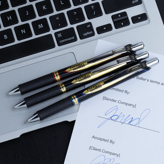 Archival quality liquid gel pens. Water resistant, light-fast and fade resistant ink. Permanent, pigmented gel ink is perfect for signing or writing important documents.