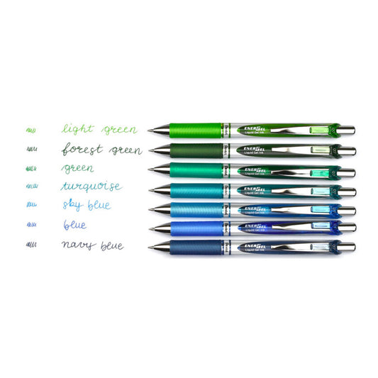 Energel Liquid Gel Pen (0.7mm) - Blue-Green Spectrum 7 Assorted Colour Pack