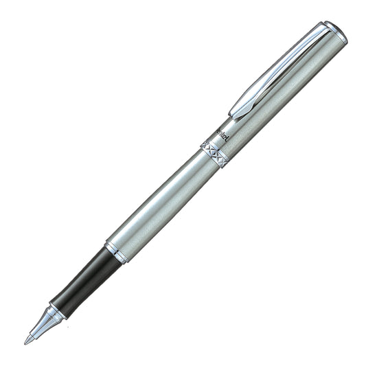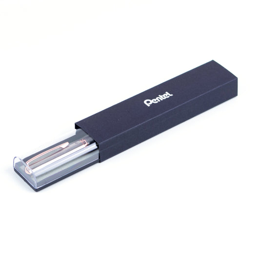 Energel Retractable Liquid Gel Pen 0.7mm Black Ink Silver Metal Body with Gift Case