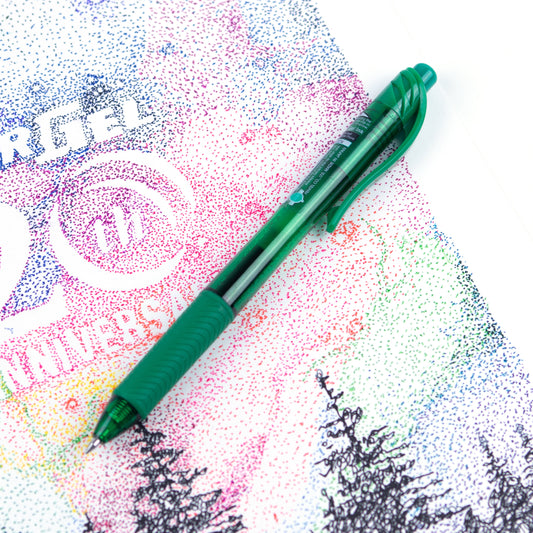 Energel-X Retractable Liquid Gel Pen 0.5mm Green - Needle Tip